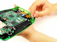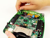 When unscrewing the game cartridge screws, you will find a loose black plastic component underneath the game cartridge.