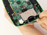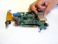 Lift the screen from the motherboard by pulling the board out from the three metal tabs.