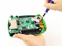 Separate the screen from the motherboard and lay the device's components flat open like a book.