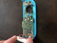 Gently pull the cord that's connecting the battery to the motherboard up and out of the Joy-Con.