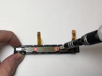 • Unscrew the three golden 3 mm Phillips #000 screws holding the mid-frame in place.