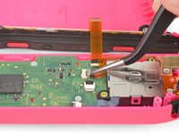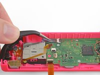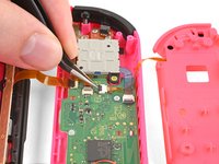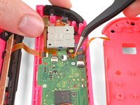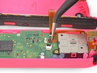 The ZL button cable is locked in place by a small ZIF connector on the motherboard. Use tweezers or a spudger to flip up the ZIF connector lock opposite the cable.