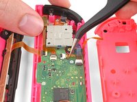 Use a spudger to gently pry the battery connector straight up from its socket on the motherboard. This will keep the Joy-Con from powering on during the repair.