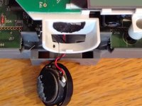 Move the speaker and its wires aside and cut a small channel in the plastic to allow the cables to pass through. TAKE CARE NOT TO CUT THE CABLES.