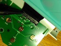 lift the pcb from the bottom and slide it out and away so the ribbon cable is opened out and fully visible.