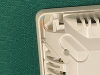 Replace the back cover plate by carefully snapping the tabs back into place. Hook the bottom of the iComfort onto the small tabs on the wall plate, and swing the top of the iComfort back into the wall plate until it snaps into place. Turn the interior unit circuit breaker back on.