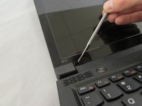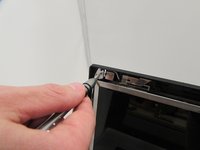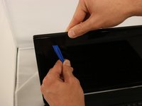 Remove both screw covers from the bottom of screen bezel using a plastic spudger. The screws underneath will now be exposed