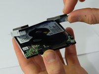 Lift the HDD case up, and gently pull at the sides of the connector to disconnect it.