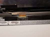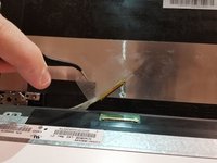Peel up the adhesive tape to unlatch the metal retaining bracket on the display cable.