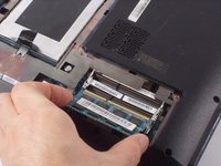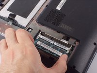Hold the right battery lock open with one hand while removing the battery itself with the other.