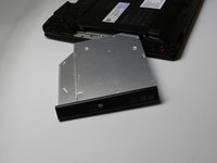Using the Philips #1 Screwdriver, remove the Optical Drive 4.7 mm Philips #1 screw. Once you remove the screw, locate the metal tab beneath the screw and push it outwards.