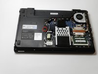 The computer should be open with many of the internal components shown. You can now access the hard drive, the RAM, and the keyboard.