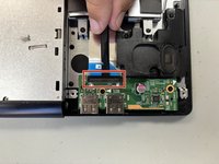 • Flip up the black ZIF locking flap. Disconnect the ribbon cable.