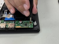 • Use a Phillips #00 screwdriver to remove the one 4 mm screw on the left speaker.