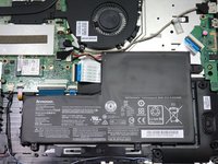Disconnect the colorful cables at the top left of the battery from the motherboard.