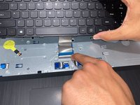 Pull the silver ribbon cable away from you to disconnect the keyboard.