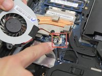 Use a Phillips #0 screwdriver to detach the fan by removing the two black 9 mm screws and the single silver 4 mm screw that is securing it to the motherboard.