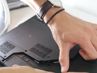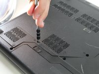 Slide the battery-lock switch on the bottom of the laptop to the unlocked position.