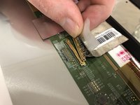 Carefully remove the clear adhesive tape holding the cable down, being careful not to damage the small wires under the tape.
