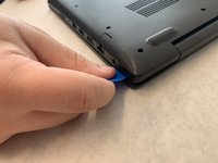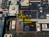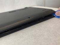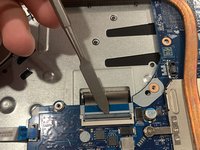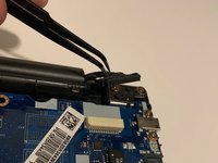 Using a plastic opening tool, lift the black tab to remove the blue tab from the Motherboard.