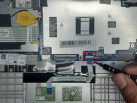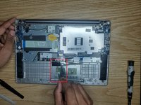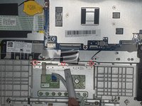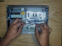 Use a pair of tweezers to lift the clip securing the touchpad cable.