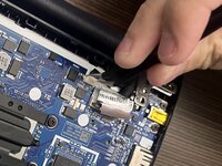 Grasp and remove the CMOS battery, which is secured with adhesive.