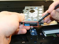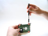 Remove the four 3mm Phillips #1 screws, two on each side, that secure the hard drive in its protective frame.
