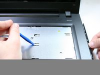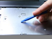 With the opening tool's head inserted under a tab, push to the right. The optical drive should slide out easily.