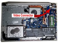 • 1- Use a finger nail or nylon spudger to flip up the latch holding in the video cable.