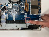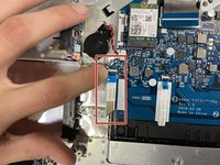 Remove the touchpad ribbon cable in the same manner as the other ribbon cables. Carefully lift the plastic tab that holds it in place and gently remove the cable until it is free from the slot.