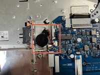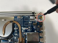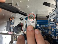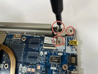 Remove the two 3mm screws that hold the display onto the motherboard along with the 4.5mm and 6mm screws next to it that hold the top corner of the motherboard to the computer chassis.
