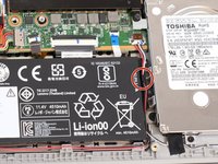 There is a wire clipped to the side of the battery next to the hard drive; unhook this wire.