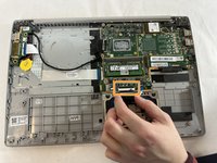 Disconnect the silver bar holding down the frame to the touchpad, and remove the gold tape.