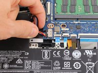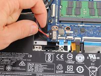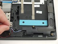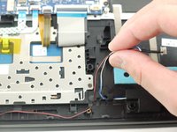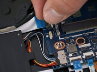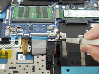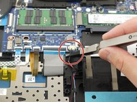 Using the iFixit nylon tipped tweezers, disconnect the wire that connects the speakers to the motherboard.