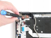Using the Phillips #00 screwdriver, remove the four total 5 mm screws from the left and right hinges (two screws on each hinge).