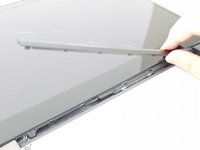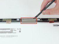 Using a spudger, remove the screw cover to expose two screws. Repeat this step for the cover on the right side of the screen.