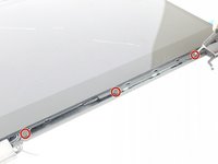 Using the Phillips #00 screwdriver, remove the four total 5 mm screws from the left and right hinges (two screws on each hinge).
