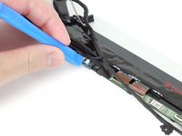 Gently use the plastic opening tool around the edges of the laptop to pry up the clips holding the rest of the back panel.