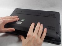 Take your free hand and place it on the battery. Gently slide it away from its slot.