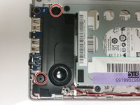 Remove the two 8mm Phillips #1 screws holding the left speaker in place.