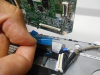 • Remove the second (and last) ribbon cable from the motherboard by gently pulling on the blue pull tab.