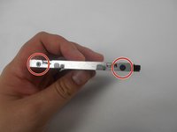 • Using a Phillips #0 screwdriver, remove four 2.5mm screws, two per side, to release the hard drive from its mounting bracket. These screws are directly next to each mounting screw you removed previously.