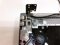 Remove the three total silver 6 mm screws from the hinges of the screen in the top corners of the device using a Phillips #0 screwdriver.
