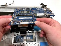 Carefully lift the motherboard from the base of the computer and remove it from the laptop.