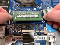 Using your thumbs, gently pull the two metal prongs that secure the RAM outwards.