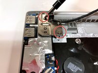Remove the four 3 mm screws holding the hard drive expansion slot in place using a Phillips #0 screwdriver.