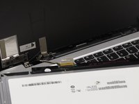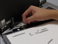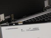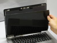 Once the four screws are removed, gently rest the screen facedown on the keyboard.