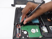 Using the Phillips #0 screwdriver, remove the two 3mm screws at the end of the hard drive bracket.