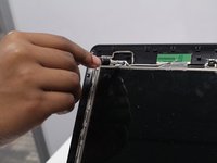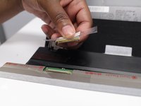 Remove the adhesive tape from the small rectangular connector at the bottom of the screen.
