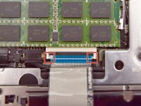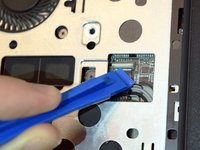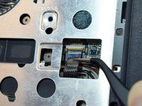 Locate the small trackpad ribbon cable and use the opening tool to lift the black flap on the connector.